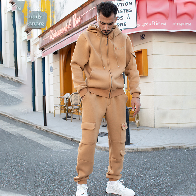Appearance:Step up your style game with this coordinated set featuring a long-sleeved hoodie with a hood, full front zipper closure, and matching elongated pants. The embroidered logo design on the chest adds a touch of sophistication, while the practical side pockets offer convenience and functionality, creating a perfect blend of fashion and utility in one sleek package.