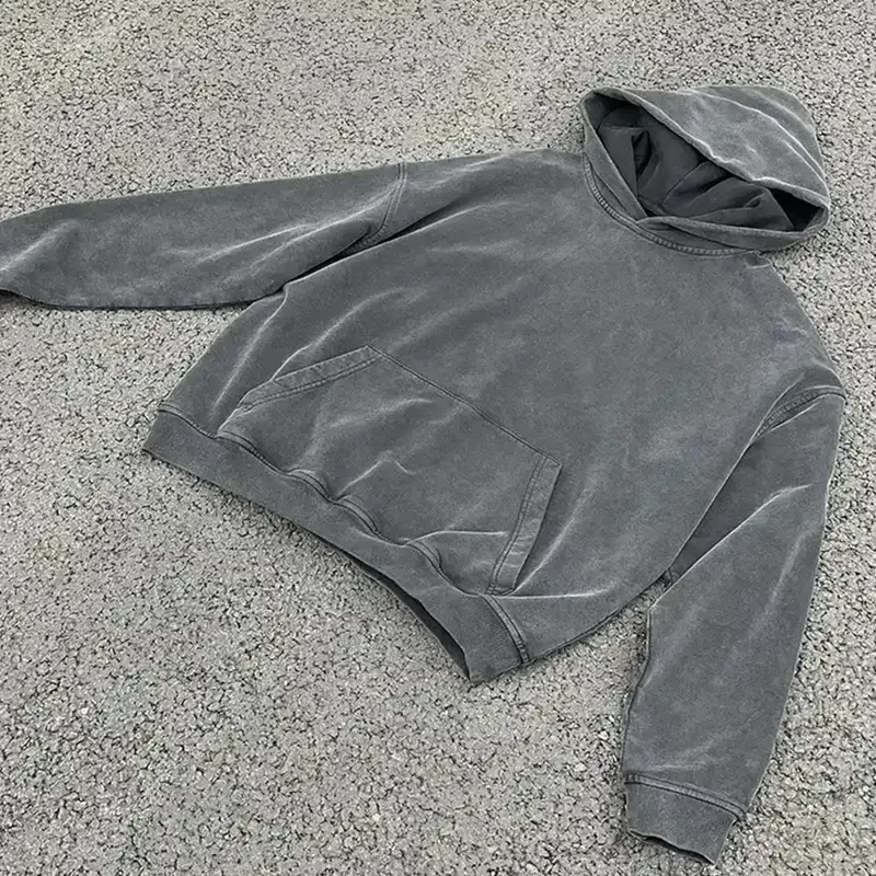 This sweatshirt features a stylish hood and a practical front pocket, combining fashion with functionality. The washed and distressed finish gives it a trendy vintage appeal, while the classic silhouette enhances its timeless charm. With its relaxed fit and practical design, this hoodie is perfect for layering or wearing on its own, making it a versatile choice for casual outfits.