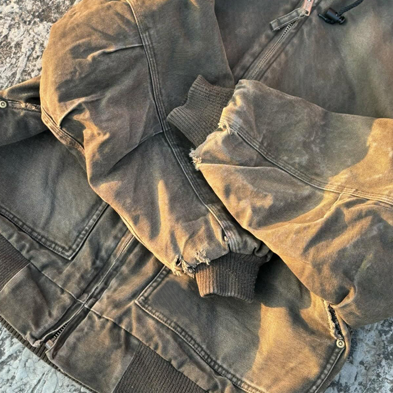 Acid Wash Cotton Canvas Vintage Work Hooded Jackets Men