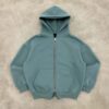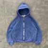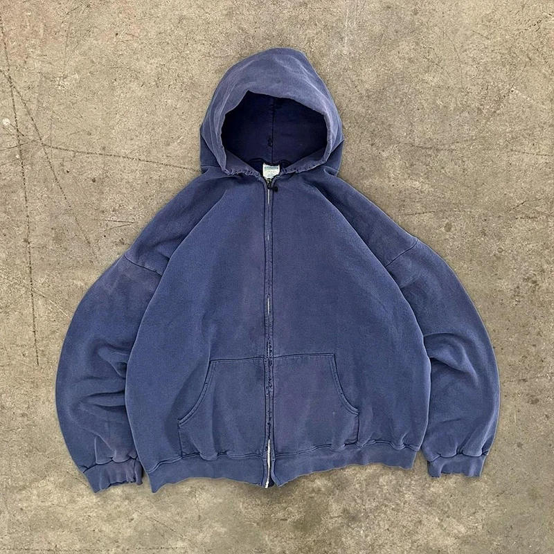 This stylish hoodie features a convenient front zipper and a cozy hood, perfect for keeping you warm during colder days. The practical front pockets offer ample storage for small essentials, while the washed, distressed finish enhances its vintage charm. This retro style makes it a timeless addition to your wardrobe, easily pairing with various outfits for a laid-back yet chic look.