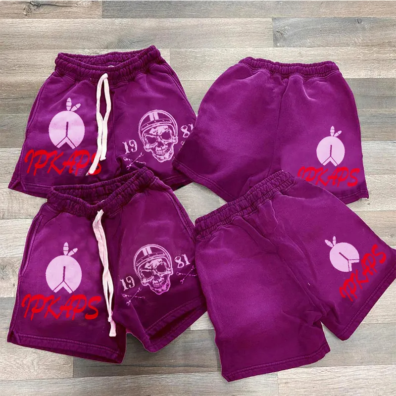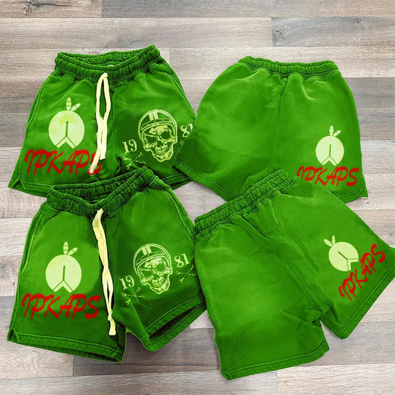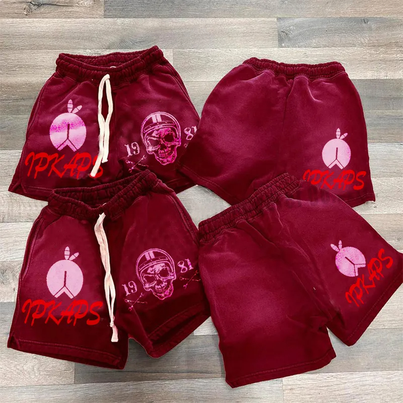These shorts feature an elastic waistband equipped with an adjustable drawstring for a personalized fit. Practical side pockets add convenience for storing essentials while on the go. The eye-catching prints on the front and back enhance the overall aesthetic, while the washed and distressed finish gives them a trendy, vintage vibe. This blend of style and functionality makes these shorts a fashion-forward choice for any casual outing.