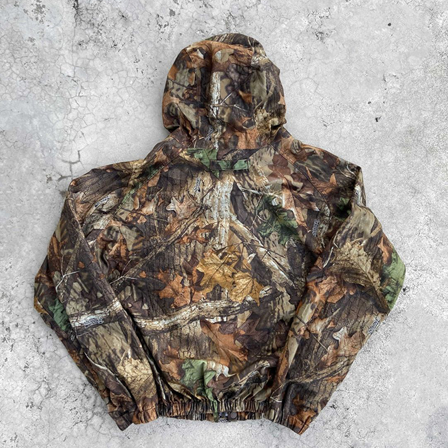 1. Trendy Design with Functional Features: Featuring a stylish hood and a central zipper, this jacket showcases an eye-catching all-over branch camouflage print. The side pockets add practicality, allowing you to store essentials securely while enhancing the jacket’s overall aesthetic appeal.