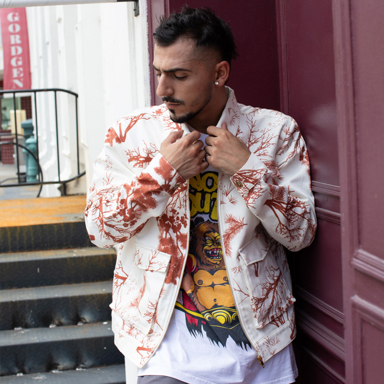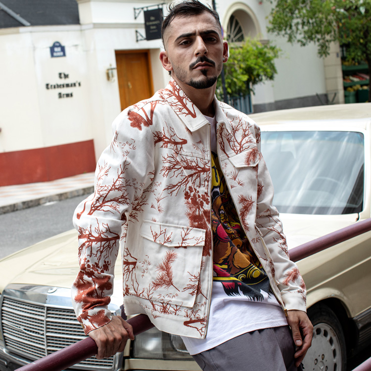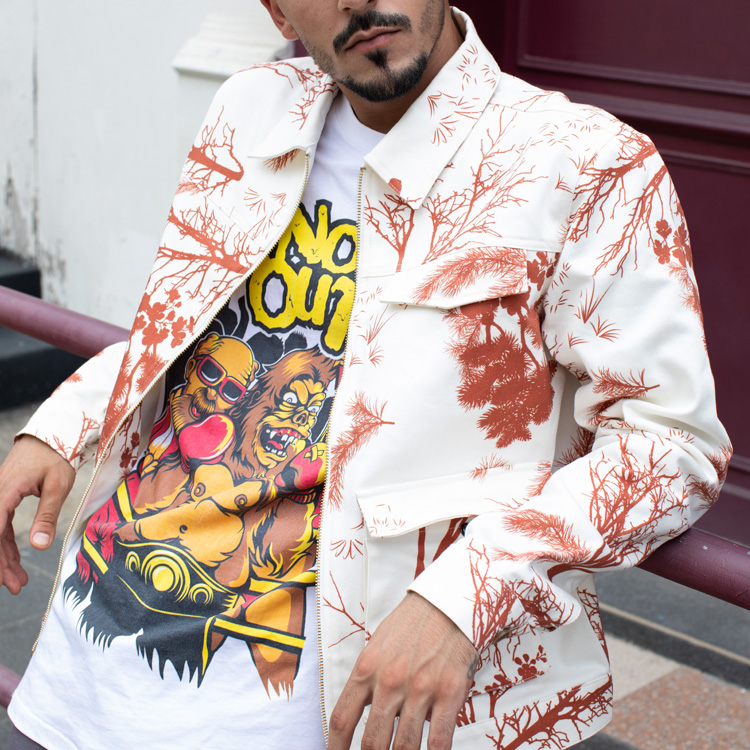 Elevate your look with our collared Denim Cotton Jacket featuring a front zipper closure, vintage washed effect, and large pockets on both sides. Embrace the retro aesthetic with extensive printed decorations that add a unique flair. This jacket combines classic style with modern influences, making it a versatile addition to your wardrobe for casual outings and beyond.