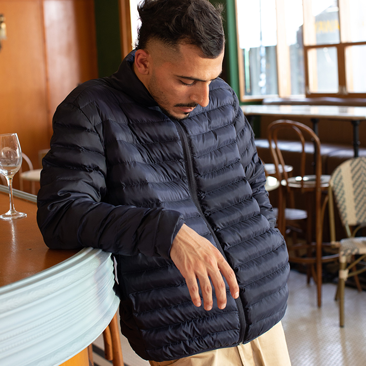 Stay warm and stylish in our men’s Polyester Puffer Jacket, featuring a polyester outer shell and polyester filling that provides superior softness and insulation, perfect for the winter season. Embrace the cold weather in comfort with this cozy puffer jacket that offers both warmth and a sleek aesthetic. Beat the chill in style with this versatile winter essential.